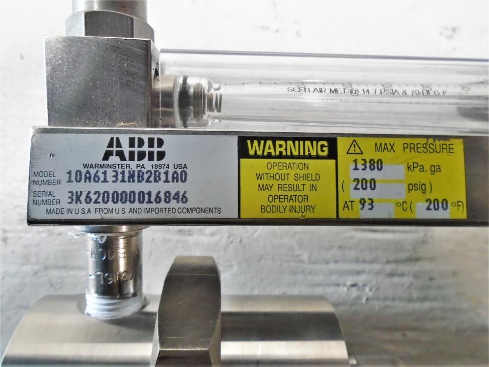 ABB Stainless Steel Flowmeter Assembly 10A6131NB2B1A0 Model#: 10A6131NB2B1A0 Max Pressure: 1380 kPa. ga (200 psig) at 93°F (200°F)