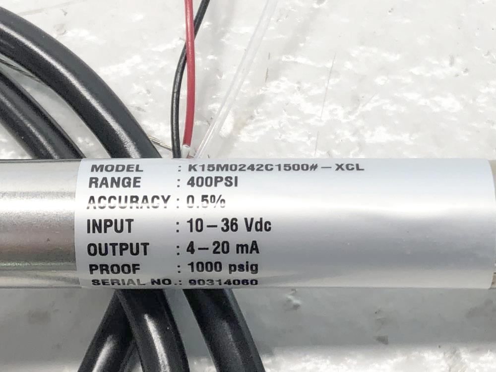 Ashcroft 1500 PSI Transducer K1-5-M02-42-C-1500#-XCL K15M0242C1500#-XCL Range: 400 PSI Accuracy: 0.5% Elect. Conn.: Male Conduit Out: 4-20 mA Conn: 1/4" MNPT