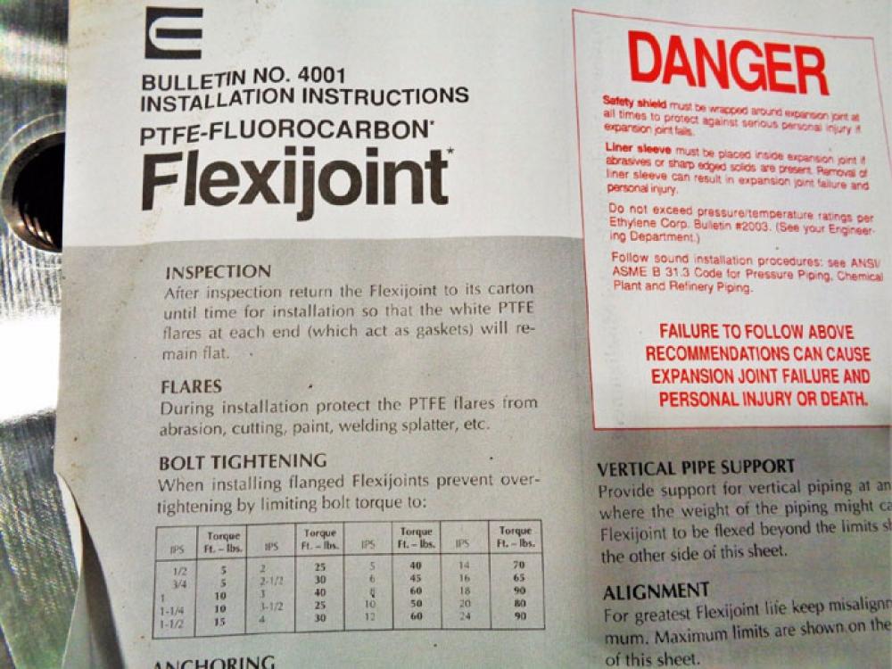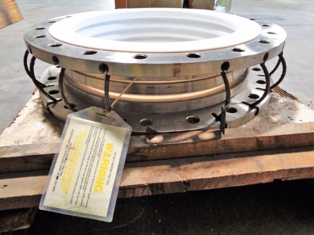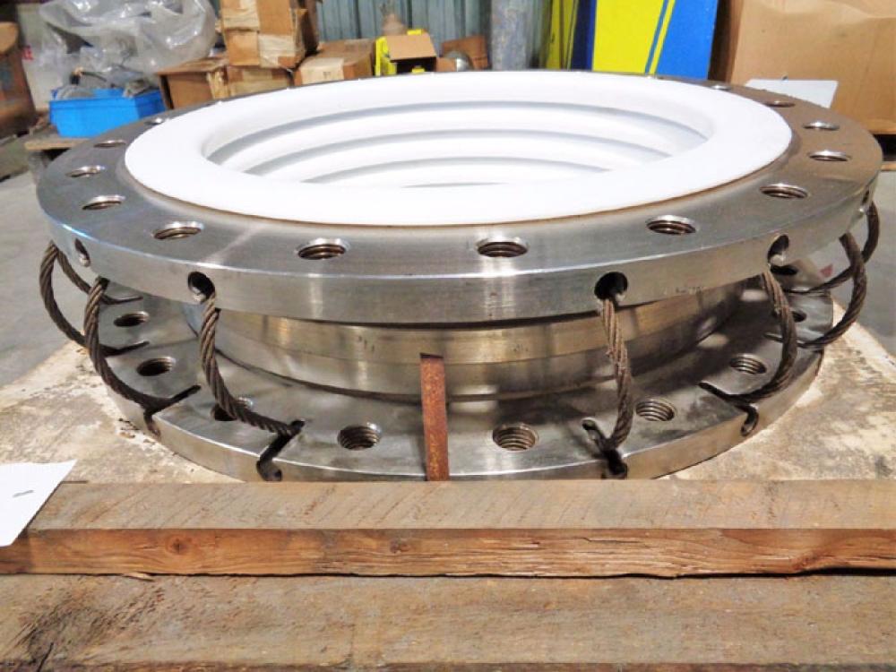 ETHYLENE STAINLESS STEEL 20" PTFE 4-CONVOLUTE FLUOROCARBON FLEXIJOINT 20SIBA-4 ETHYLENE CORP. STAINLESS STEEL FLUOROCARBON FLEXIJOINT PRODUCT CODE: 20SIBA-4 STYLE: LIMITLINK SIZE: 20" ANSI 150# (STD) LINER MAT'L: PTFE 4-CONVOLUTE