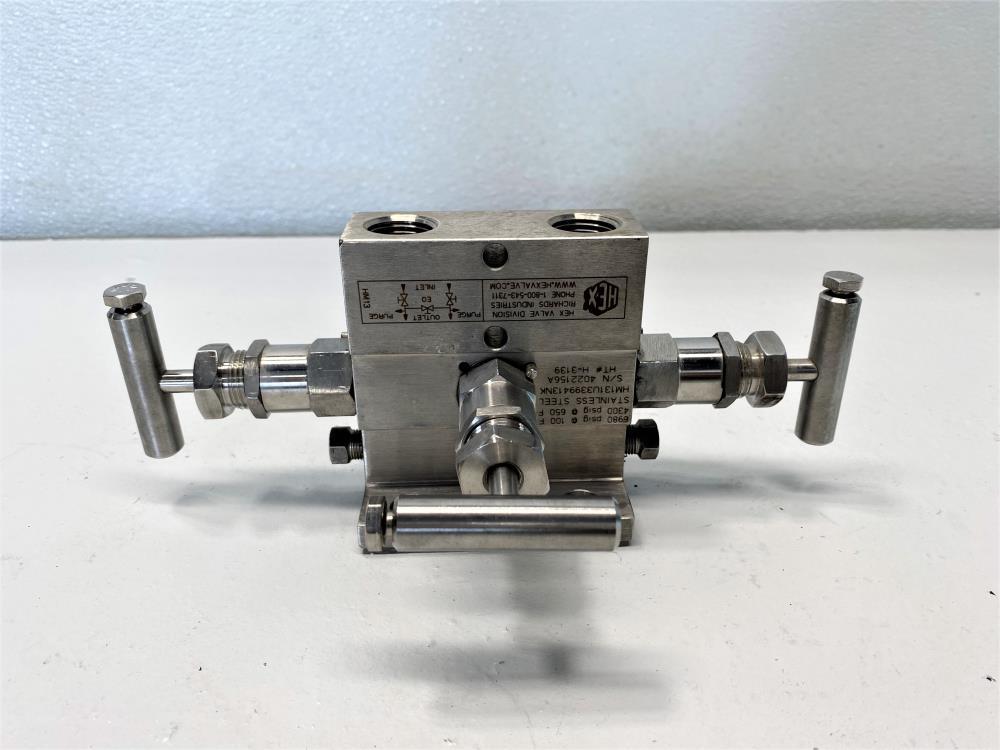 HEX 1/2" NPT Manifold, Stainless Steel, HM131U3399413NK HM131U3399413NK HT #: H-3139 1/2" NPT Stainless Steel 6980 PSIG @ 100F 4300 PSIG @ 650F