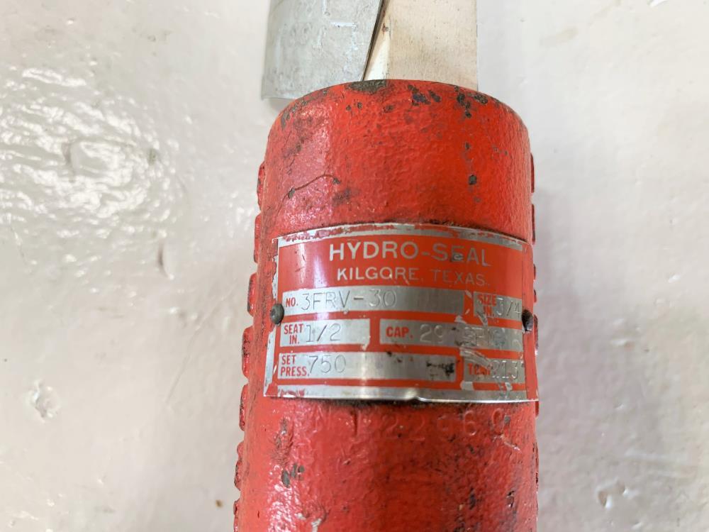 Hydro-Seal 1/2" x 3/4" NPT 750# CF8M Relief Valve 3FRV-30 # 3FRV-30 Size: 3/4" NPT x 1/2" NPT Seat Cap: 29 GPM Set Press: 750 Temp: 213 CF8M Body Material