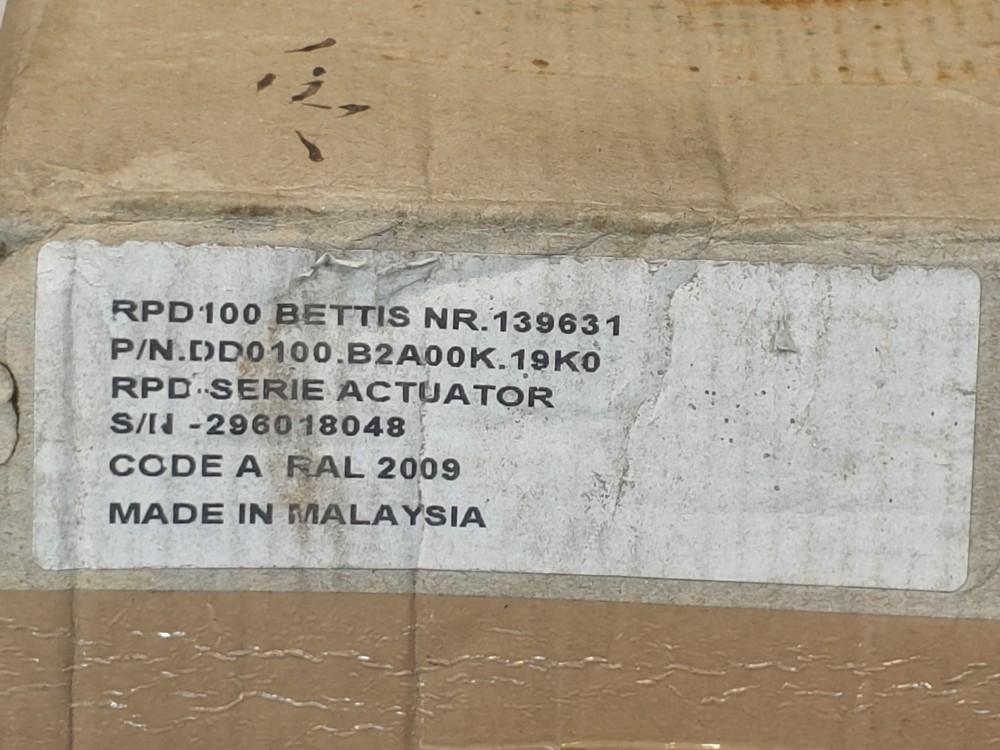 BETTIS Pneumatic Valve Actuator DD0100.B2A00K.19K0 Model#: DD0100.B2A00K.19K0 Bettie #: 139631 Temp Range: 176°F / -4 °F M.O.P: 120 PSIG BETTIS Pneumatic Valve Actuator Threaded Entry: 1/4"
