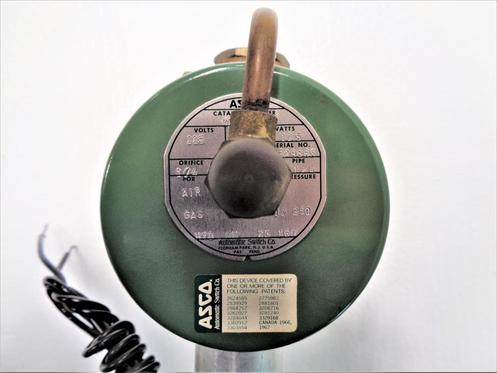 ASCO 1/4" NPT Brass Solenoid Valve WP83440 Volts: 115 Watts: 10.5 Orifice: 1/4" Pipe: 1/4" NPT Gas Pressure: 10 250 Hyd. 011 Pressure 25 160