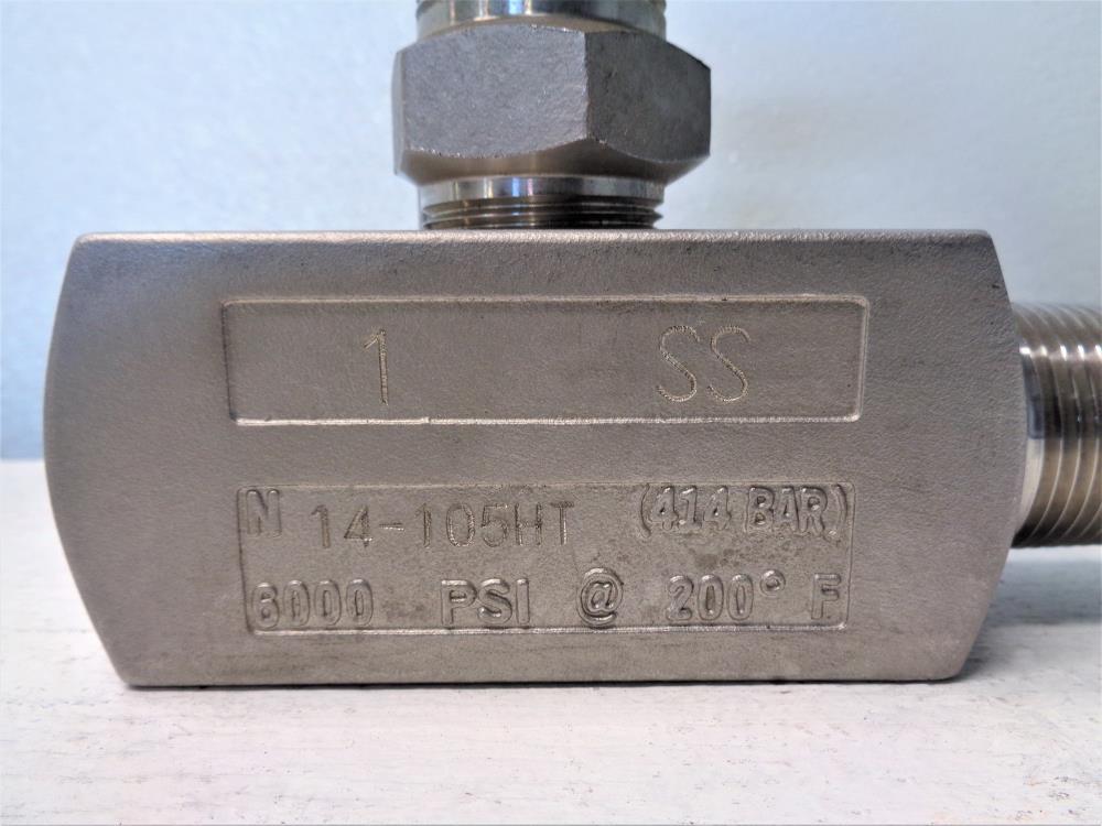 1" NPT Needle Valve, Stainless, 6000 PSI, N14-105HT