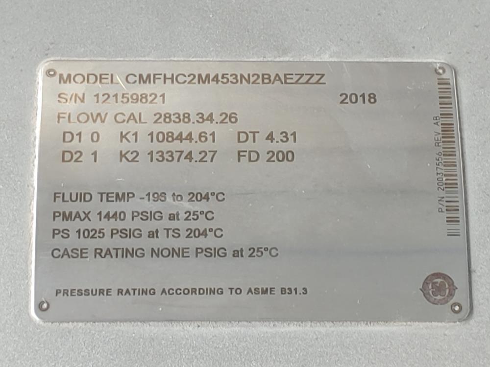 Micro Motion CMFHC2M453N2BAEZZZ 6" 600# Mass Flow Sensor Series 800