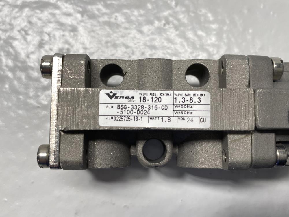 Versa 1/4" NPT 3-Way 316SS Pneumatic Directional Valve BSG-3328-316-CD-5100-D024 Part #: BSG-3328-316-CD-5100-D024 1/4" NPT and 1/2" NPT Connections Material: 316 Stainless Steel Pressure Range: 18 PSIG Min - 120 PSIG Max 50/60 Hz 1.8 Watts 24 VDC