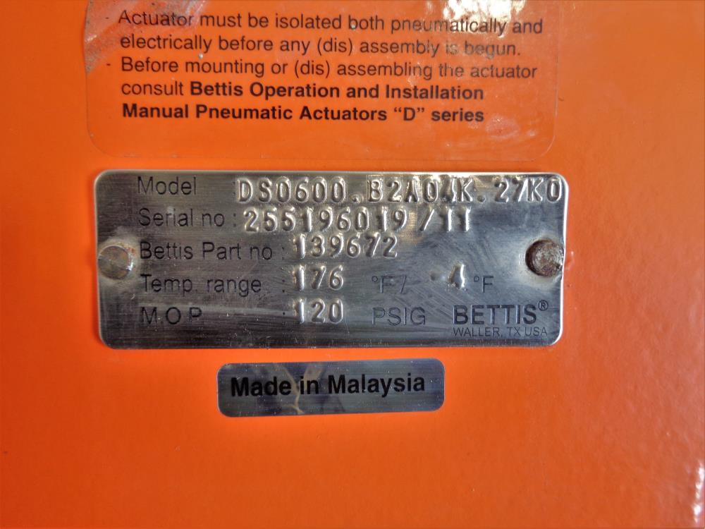 Bettis Actuator, Model# DS0600.B2A04K.27K0, Part# 139672 Model# DS0600.B2A04K.27K0 Part# 139672 Temp Range: 176°F / -4°F M.O.P.: 120 PSIG