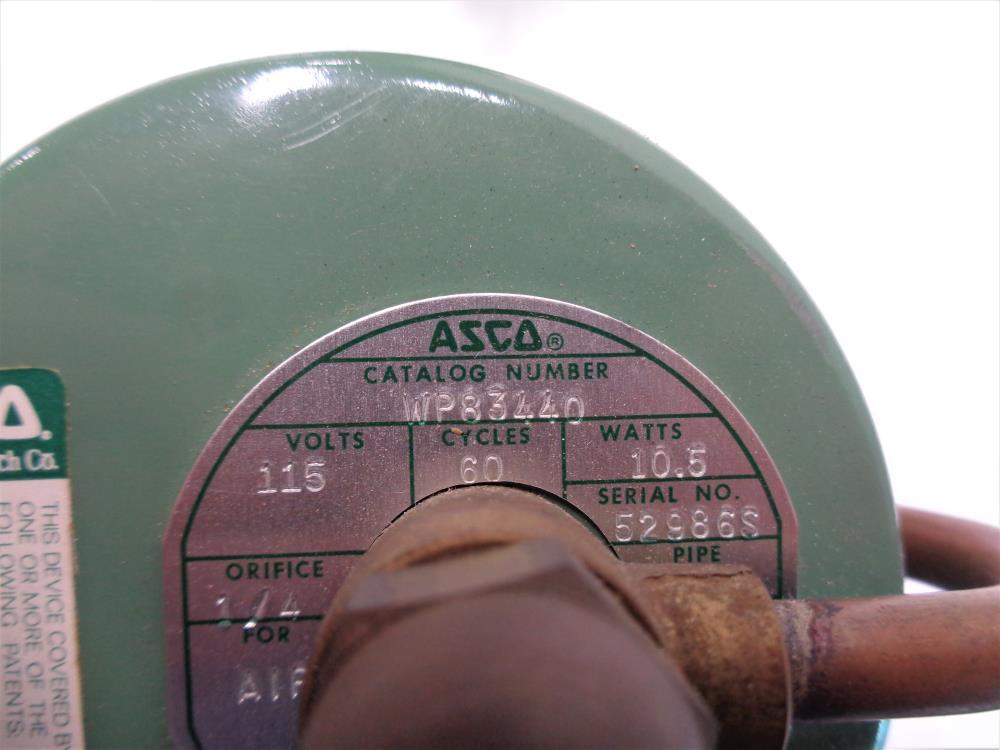ASCO 1/4" NPT Brass Solenoid Valve WP83440 Volts: 115 Watts: 10.5 Orifice: 1/4" Pipe: 1/4" NPT Gas Pressure: 10 250 Hyd. 011 Pressure 25 160